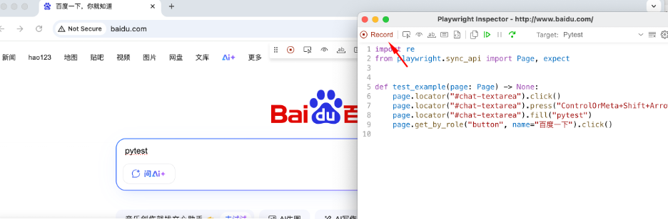 然后直接就给我生成了对应的pytest的测试方法,虽然元素定位的值要改一下,但是看了下基本的逻辑步骤倒是没错。