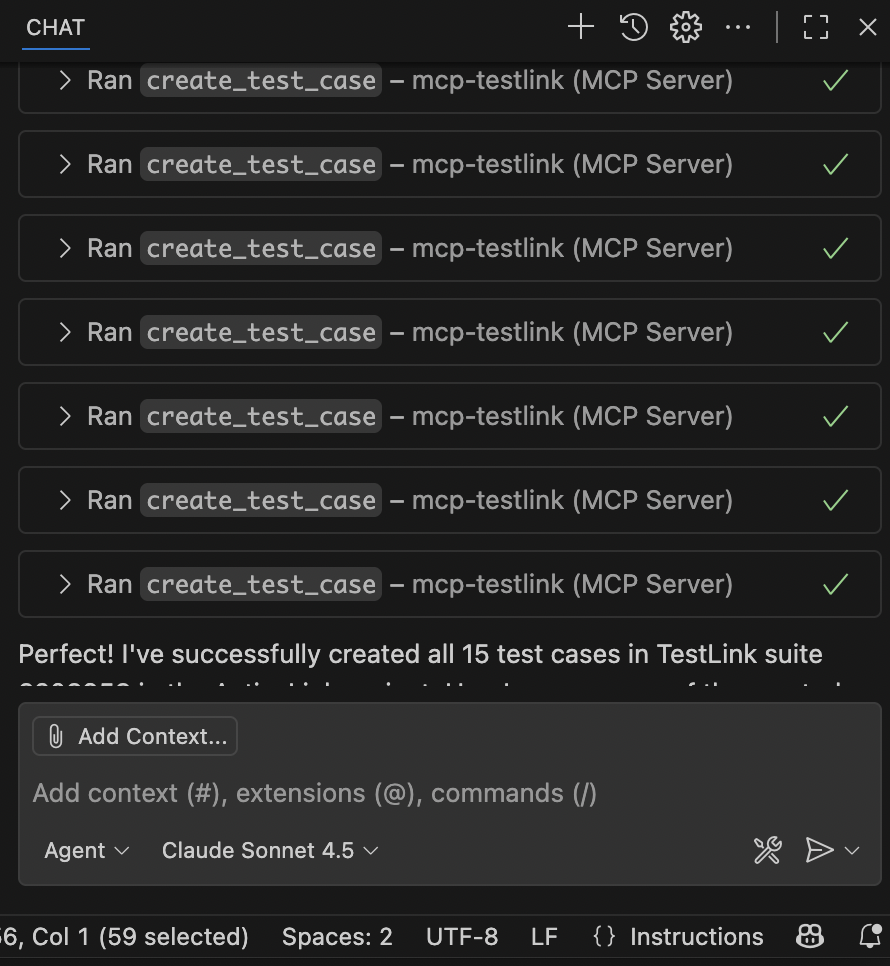 现在已经能看到效果并能通过prompts获取内网testlink的case信息了,那么再加一个创建case的,从需求到用例再到脚本的流程就串通了。